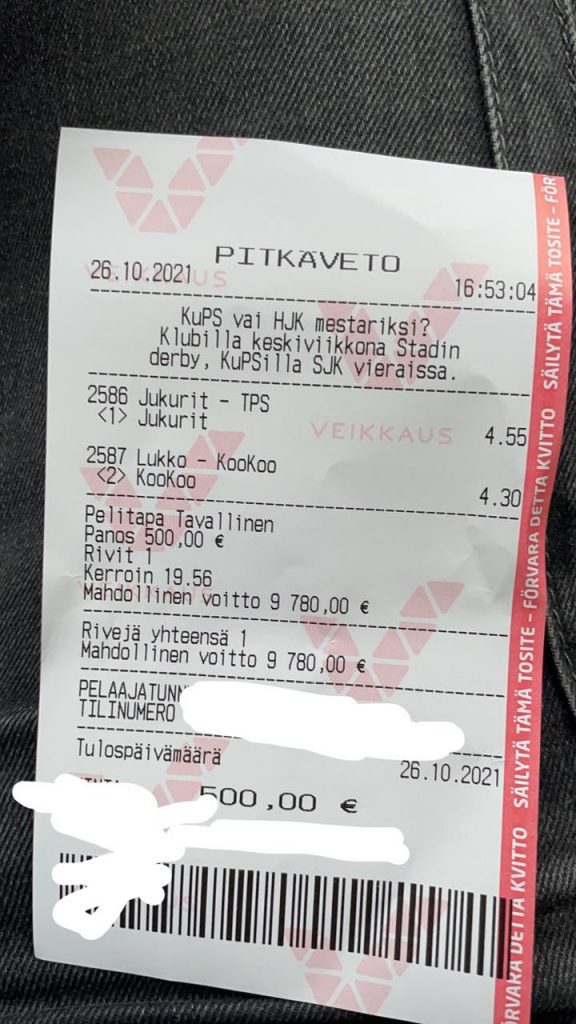 Hänelle 500€ betsi on tavanomainen, eikä voittorahoille ollut sen suurempia suunnitelmia. Hän vastasi vain ytimekkäästi, että “Pelikassaan se menee”. Toivottavasti saamme nauttia hänen lapuistaan jatkossakin.