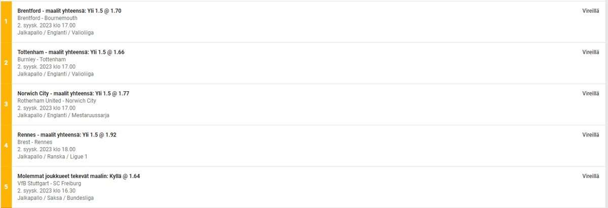 - Kierrätä talletus yhden kerran min. 1.50 kertoimella, niin saat bonuksen